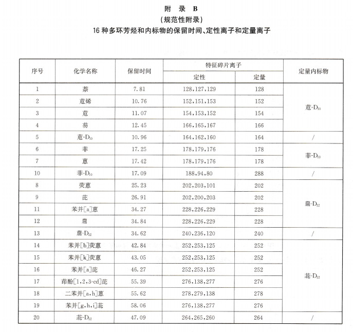 本標準規(guī)定了水產(chǎn)品中16種多環(huán)芳烴(PAHs)的氣相色譜-質(zhì)譜測定法。