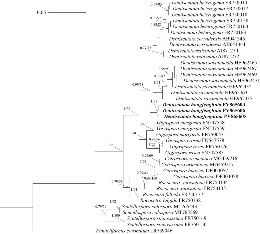 Shi WW, Suo MY, Zhong XM, Zhang Y, Tao GY, Jiang L, 2025. Dentiscutata hongfenghuana, a new species of arbuscular mycorrhizal fungi from Hongfeng Lake, Guiyang, southwest China. Mycosystema, 44(11): 250219。