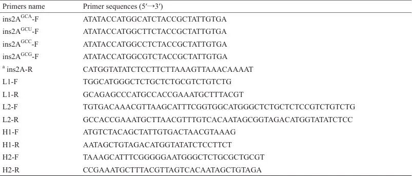 表2 5′mRNA序列設(shè)計(jì)Table 2 Design of synonymous mutation sequences of 5′mRNA